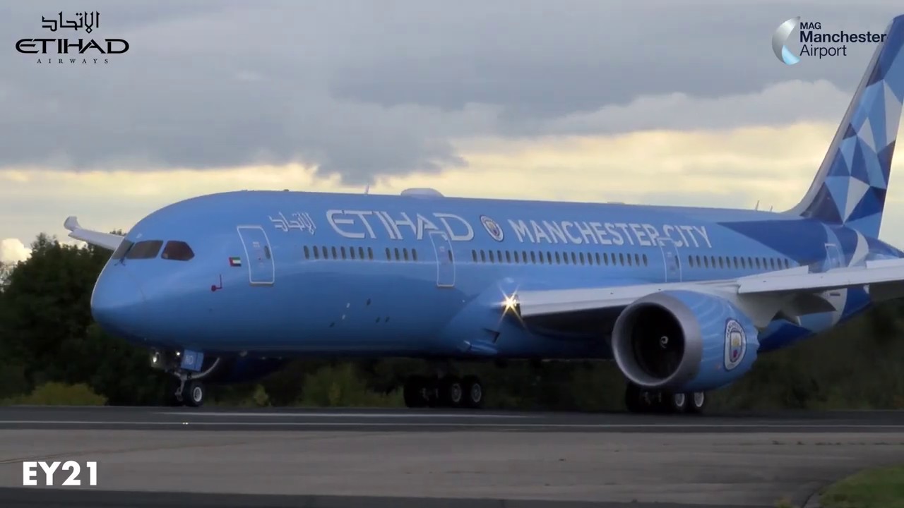 Etihad Airways brand new Manchester City Boeing 787 livery landed at Manchester Airport on Monday 21st October 2019.
